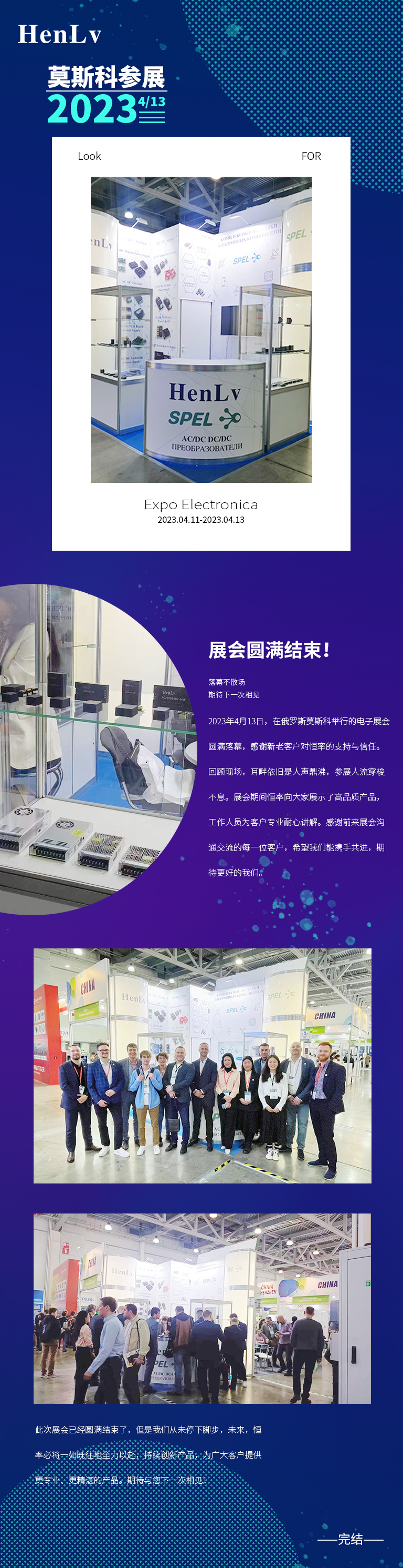 2023年4月13日,在俄罗斯莫斯科举行的电子展会圆满落幕,感谢新老客户对恒率的支持与信任。回顾现场,耳畔依旧是人声鼎沸,参展人流穿梭不息。展会期间恒率向大家展示了高品质产品,工作人员为客户专业耐心讲解。感谢前来展会沟通交流的每一位客户,希望我们能携手共进,期待更好的我们。